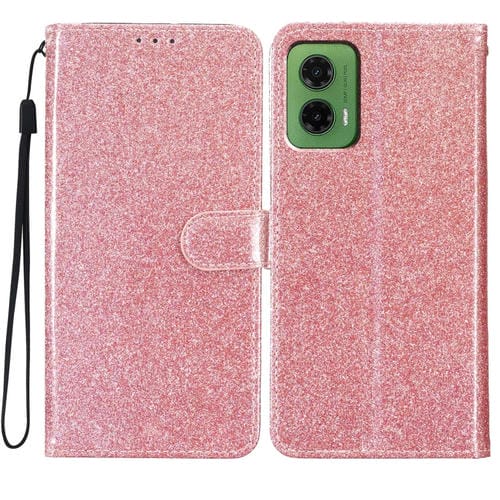 Funda de Cuero con Tapa y Purpurina para Motorola Moto G35 (Oro Rosa)