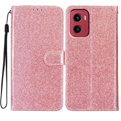 Funda de Cuero con Tapa y Purpurina para Motorola Moto G05 (Oro Rosa)