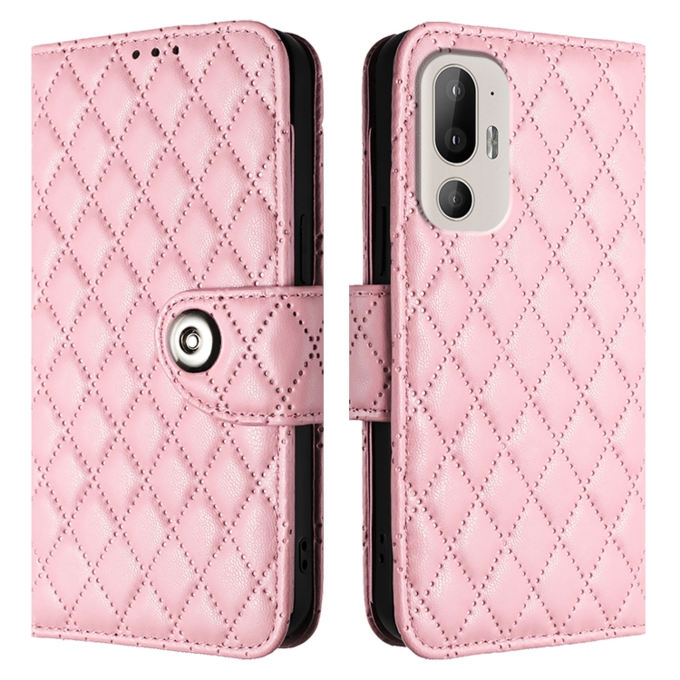 Funda de Cuero con Tapa y Textura Rombal para HTC U24 Pro con Cordón (Rosa)