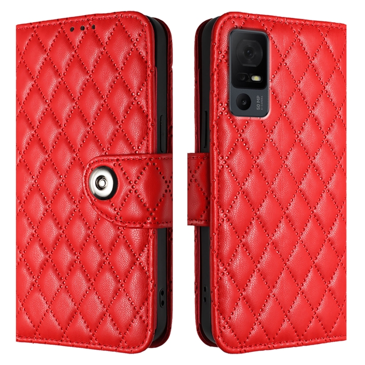 Funda de Cuero con Tapa y Textura Rombal para TCL 40 Xl/40 T T608Dl con Cordón (Rojo)