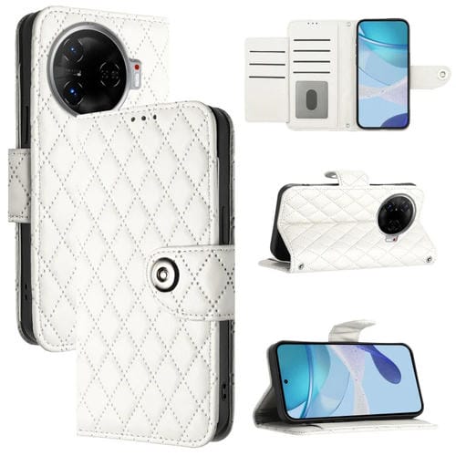 Funda de Cuero para Tecno Camon 30 Pro 5G con Tapa y Textura Rombal (Blanco)
