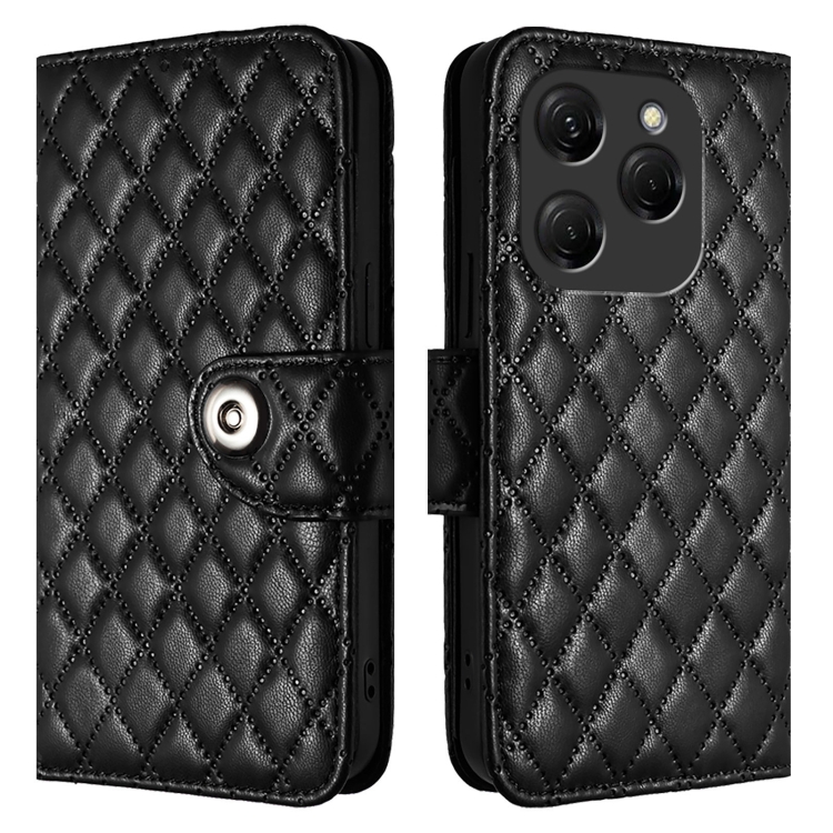 Funda de Cuero con Tapa y Textura Rombal para Tecno Spark 20 Pro con Cordón (Negro)
