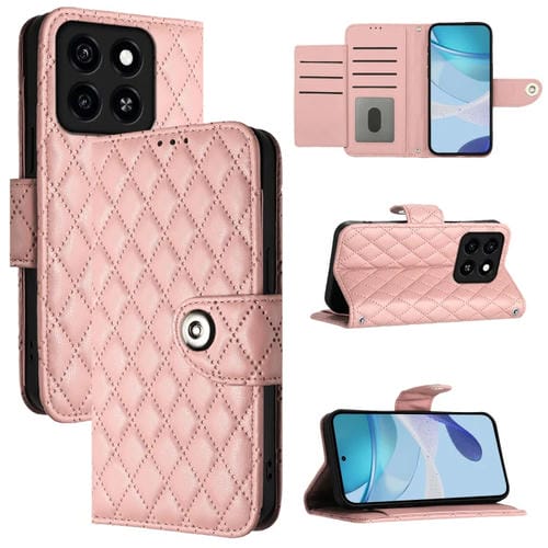 Funda de Cuero con Tapa y Textura Rombal para ZTE Blade A35/A55 con Cordón (Rosa Coral)