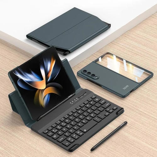 - 1x Funda de Cuero con Teclado Bluetooth Plegable Magnético para Samsung Galaxy Z Fold4 Gkk con Bolígrafo + Funda para Teléfono (Verde Oscuro)