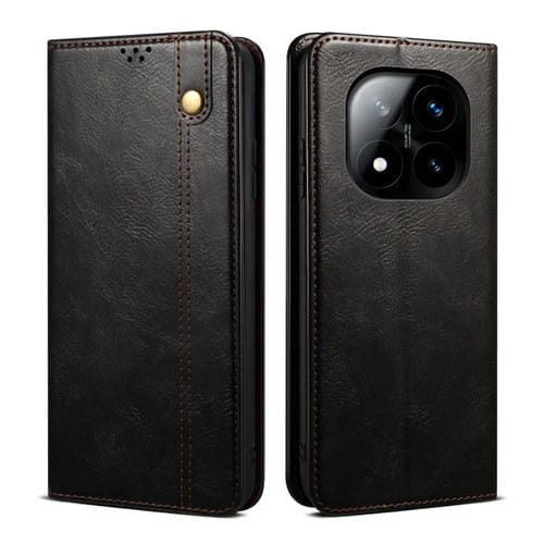 Funda de Cuero con Textura Crazy Horse y Cera de Aceite para Redmi Note 14 Pro+ 5G (Negra)