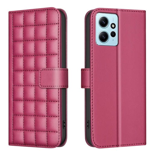 Funda de Cuero con Textura Cuadrada para Redmi Note 12 4G Global (Rojo)