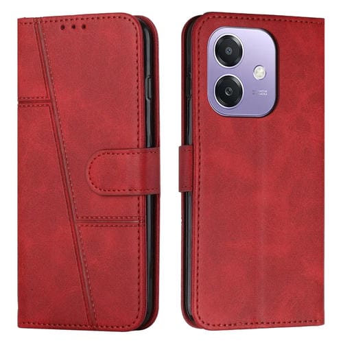 Funda de Piel con Hebilla y Textura de Becerro para Oppo A3X (Roja)