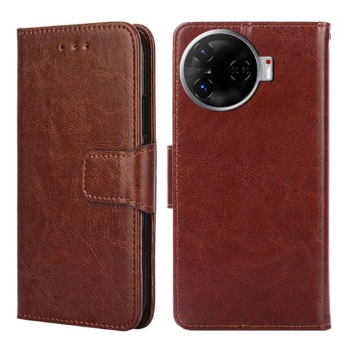 Funda de Cuero con Textura de Cristal para Tecno Camon 30 Pro 5G (Marrón)
