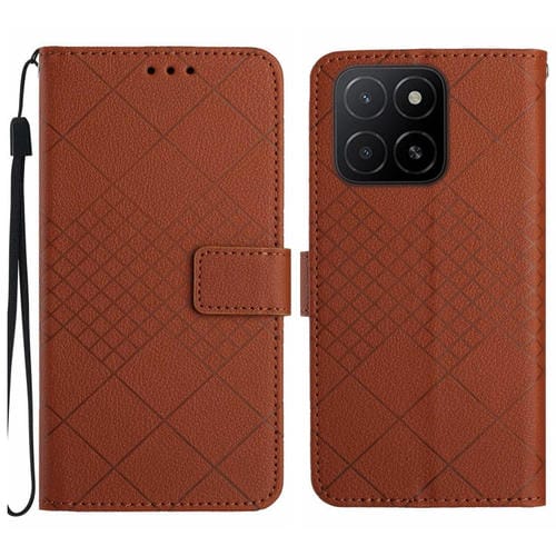 Funda de Cuero con Textura de Cuadrícula Rómbica para Honor X5B 4G y X5B Plus 4G (Marrón)