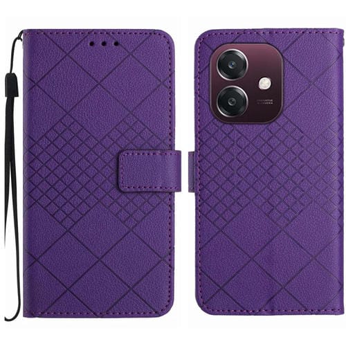 Funda de Cuero con Textura de Cuadrícula Rómbica para Oppo A3 4G Global / 5G Global (Morado)