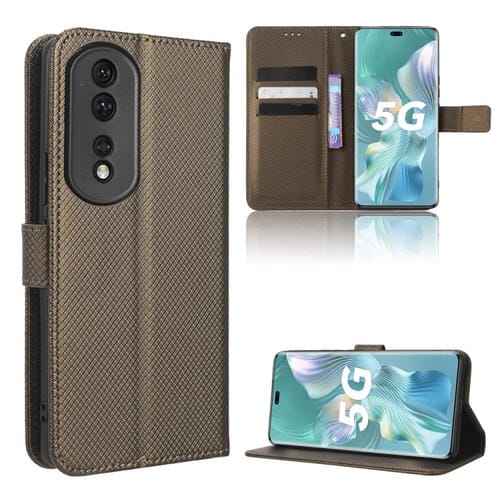 Funda de Cuero con Textura de Diamante para Honor 80 Pro 5G (Marrón)