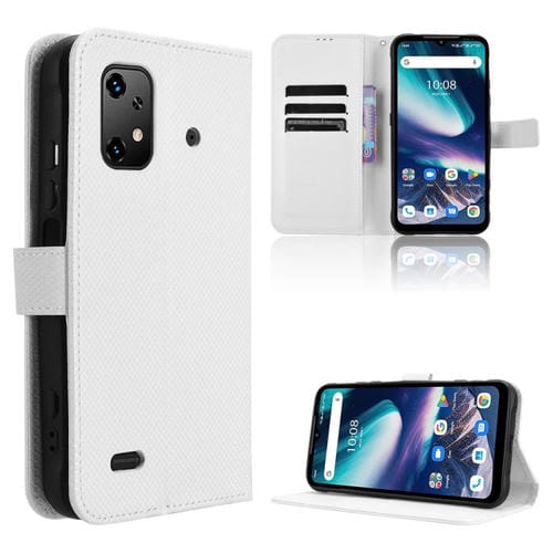Funda de Cuero para Umidigi Bison X20 con Textura de Diamante (Blanca)
