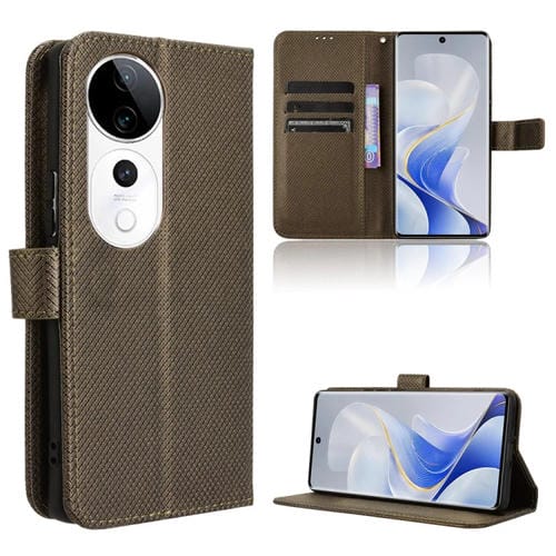 Funda de Cuero con Textura de Diamante para Vivo S19 Pro 5G / V40 5G (Marrón)