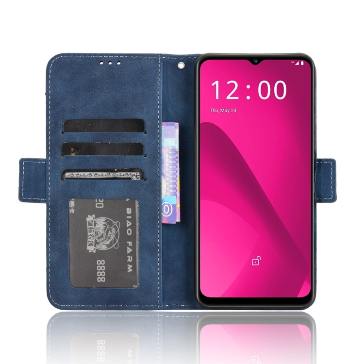 Funda de Cuero Textura Piel de Becerro para T-Mobile Revvl 7 5G (Azul) con Ranuras para Tarjetas