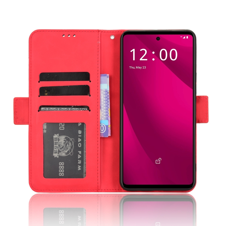 Funda de Cuero Textura Piel de Becerro para T-Mobile Revvl 7 Pro 5G (Rojo) con Ranuras para Tarjetas