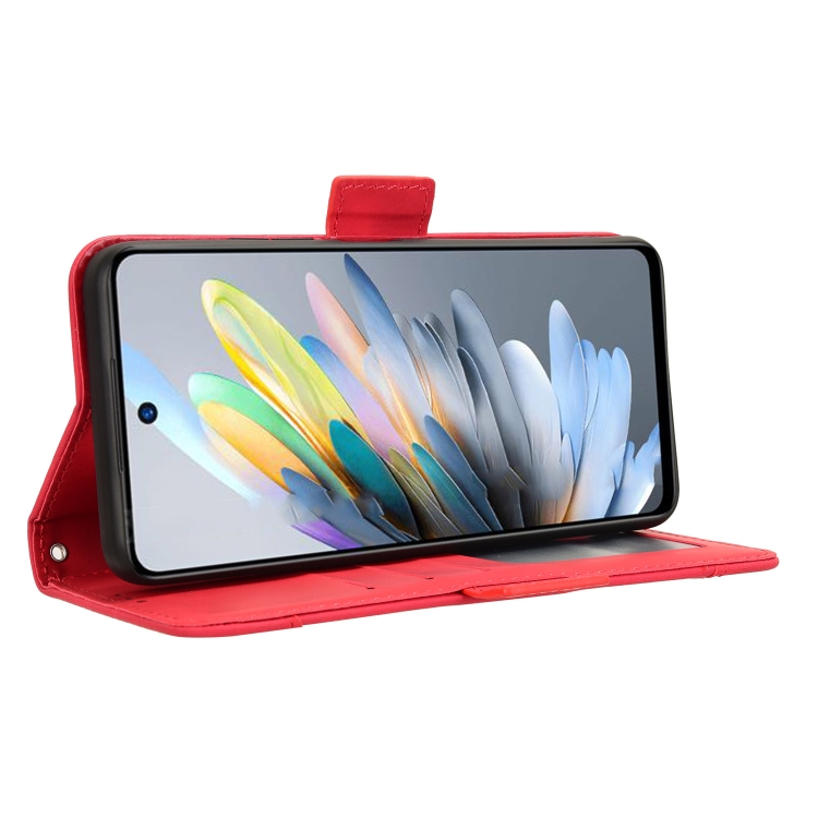 Funda de Cuero Textura Piel de Becerro para ZTE Blade A75 4G (Rojo) con Ranuras para Tarjetas