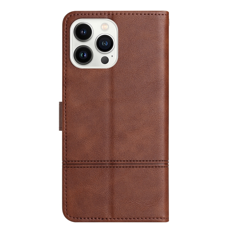 Funda para iPhone 16 Pro de Cuero con Textura de Piel de Vaca y Costuras (Café)