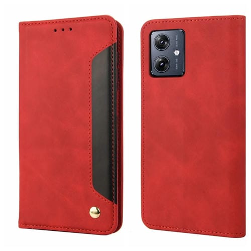 Funda de Cuero Textura Piel Sintética para Motorola Moto G55 (Rojo)