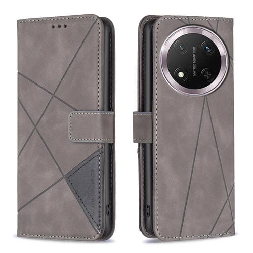 Funda de Cuero con Textura de Rombos y Hebilla Magnética para Honor X9C 5G (Gris)