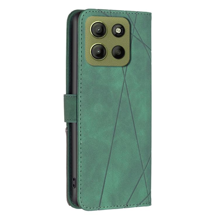Funda de Cuero para Motorola Moto G15 con Textura de Rombos y Hebilla Magnética (Verde)