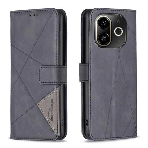 Funda de Cuero con Textura de Rombos y Hebilla Magnética para Tecno Pop 9 5G y Spark 30C 5G (Negro)
