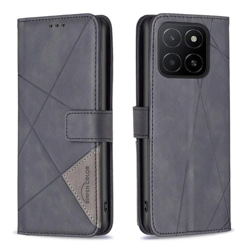 Funda de Cuero para Honor X5B con Textura de Rombos y Hebilla Magnética (Negro)