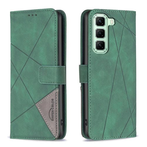 Funda de Cuero Infinix Hot 50 5G Textura de Rombos Hebilla Magnética (Verde)