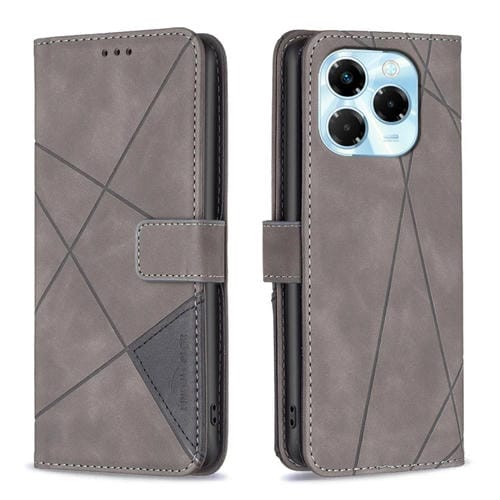 Funda de Cuero Infinix Note 40X 5G con Textura de Rombos y Hebilla Magnética (Gris)