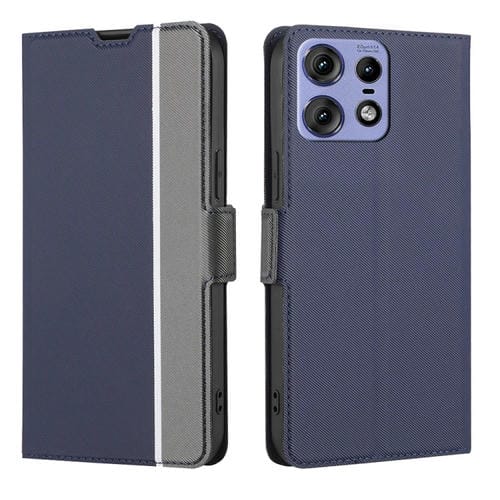 Funda de Cuero con Textura de Sarga y Botones Laterales para Motorola Edge 50 Pro 5G (Azul)