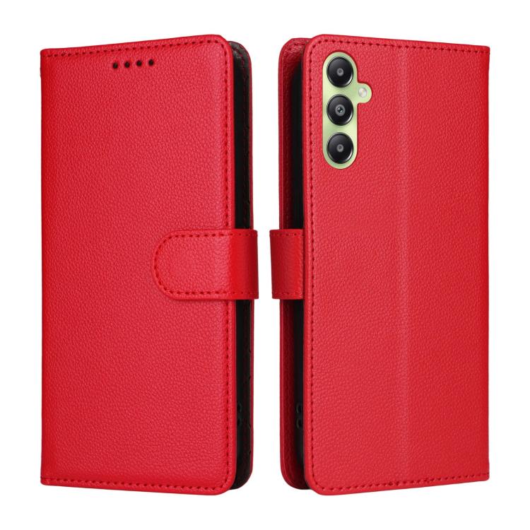 Funda de cuero con textura Litchi para Samsung Galaxy A05s, con bloqueo RFID y capacidad para 3 tarjetas (roja)