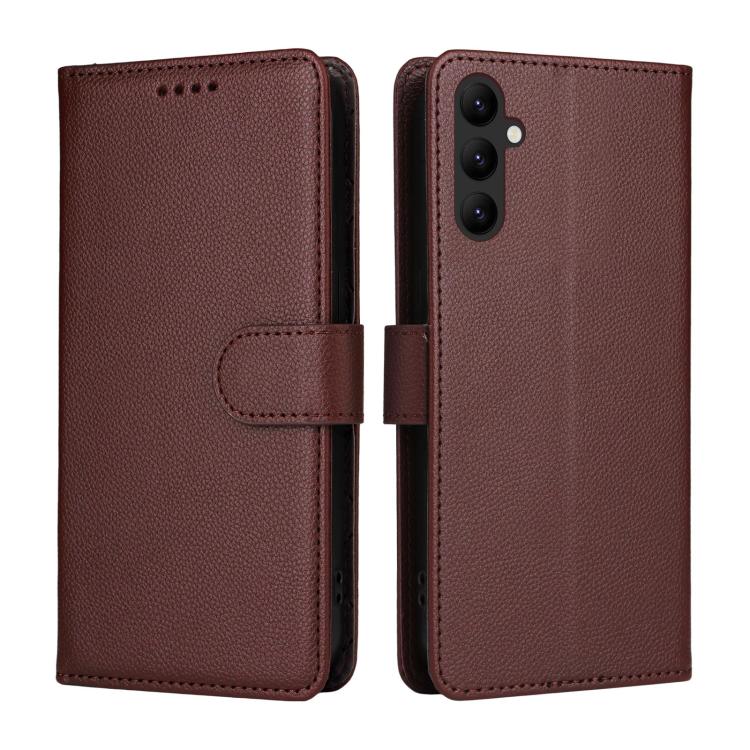 Funda de cuero con textura Litchi para Samsung Galaxy A24 4G, con bloqueo RFID y capacidad para 3 tarjetas (marrón)