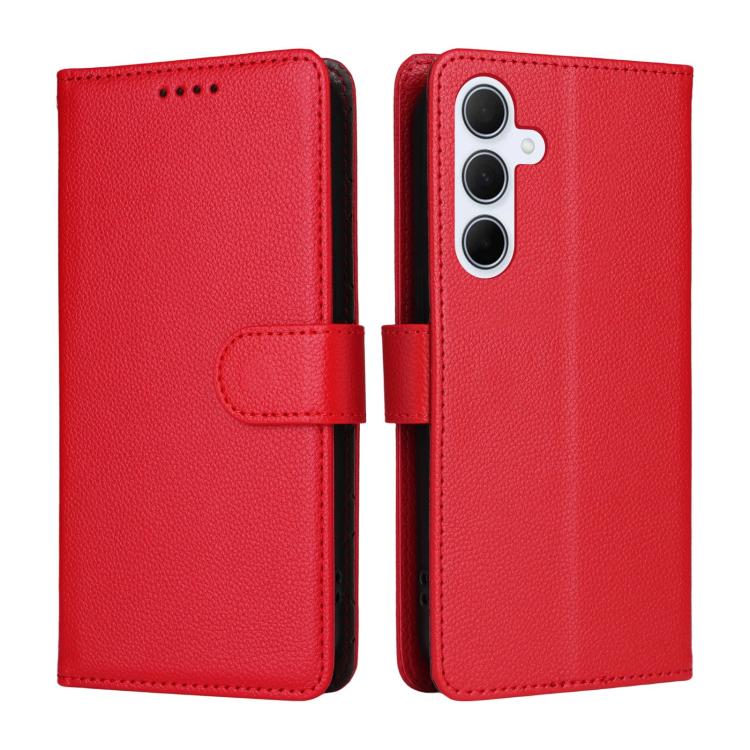 Funda de cuero con textura Litchi para Samsung Galaxy A55 5G, con bloqueo RFID y capacidad para 3 tarjetas (roja)