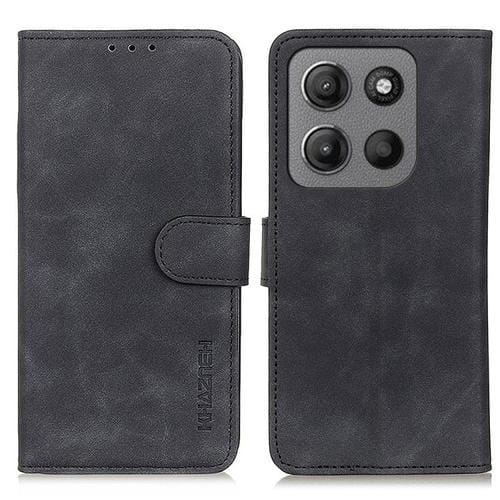 Funda de Cuero Khazneh para Motorola Moto G15 4G/G05 con Textura Retro (Negra)