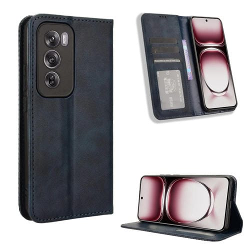 Funda de Cuero con Textura Retro y Hebilla Magnética Global para Oppo Reno12 5G (Azul)