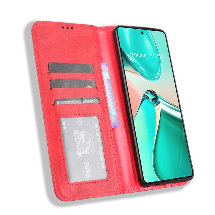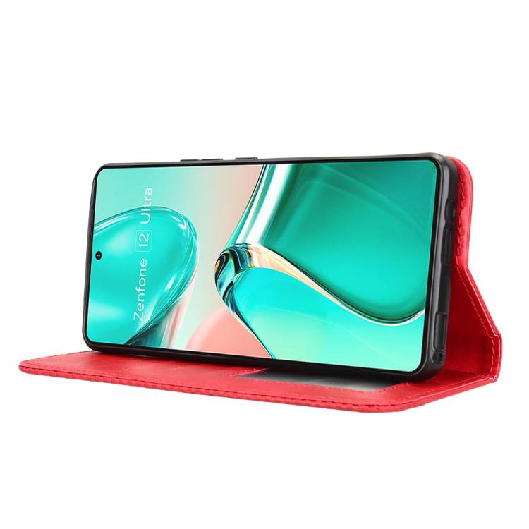 Funda de Cuero Asus Zenfone 12 Ultra con Textura Retro y Hebilla Magnética (Roja)