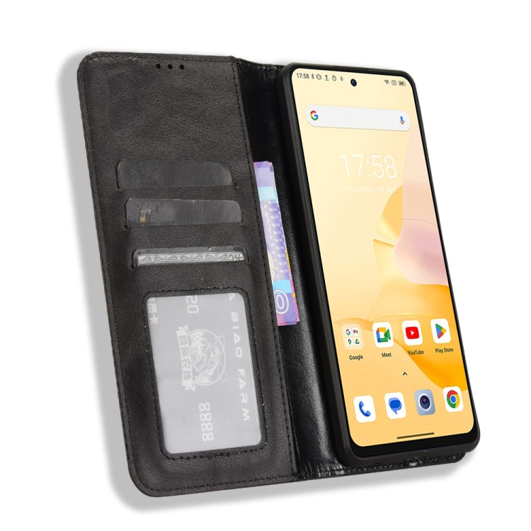 Funda de Cuero Textura Retro con Hebilla Magnética para BlackView Shark 8 y Oscal Tiger 12 (Negro)
