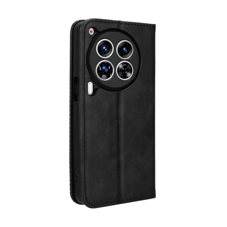 Funda de Cuero Tecno Camon 30 Premier 5G Textura Retro Hebilla Magnética (Negro)
