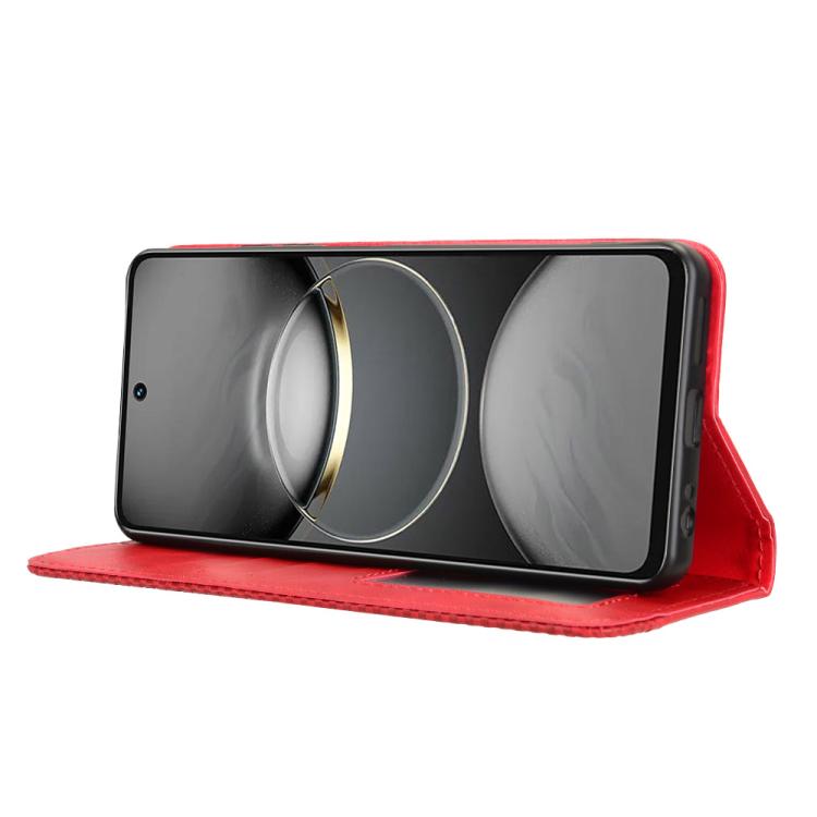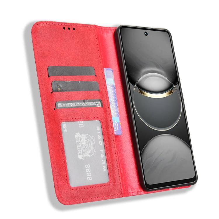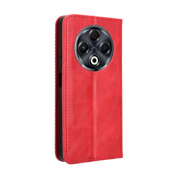 Funda de Cuero para Tecno Spark 30 4G con Textura Retro y Hebilla Magnética (Rojo)