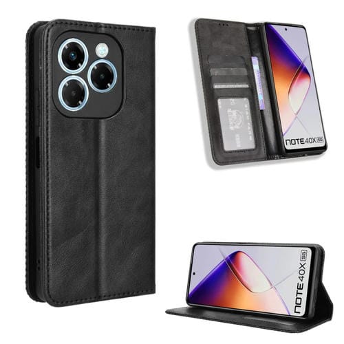 Funda de Cuero Retro con Hebilla Magnética para Infinix Note 40X 5G X6838 (Negro)
