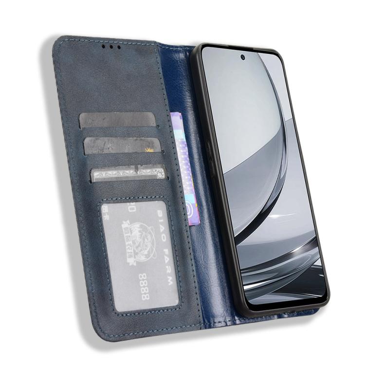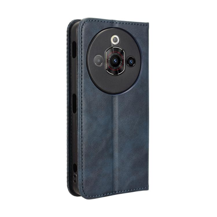 Funda de Cuero para ZTE Nubia Focus Pro 5G con Textura Retro y Hebilla Magnética (Azul)
