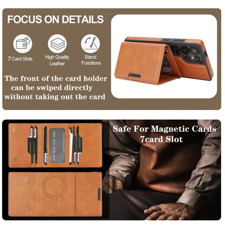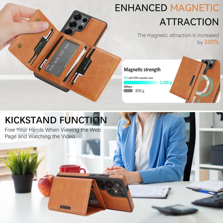 3. Funda de cuero multifuncional y elegante. Tanto la funda como el tarjetero están hechos de un imán de anillo N52 de alto rendimiento, que se puede desmontar y montar gracias a su potente magnetismo.