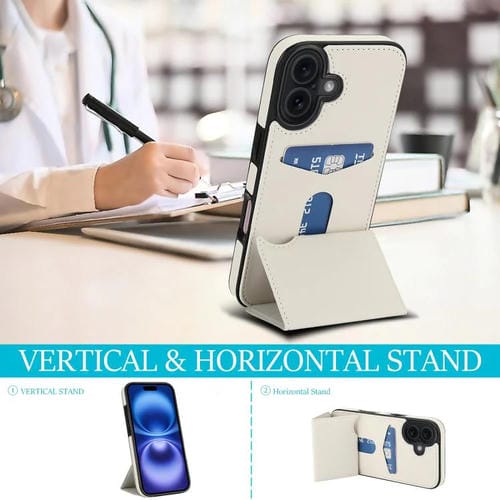 Funda de cuero con tres pliegues y ranura para tarjetas para iPhone 17 (blanca)