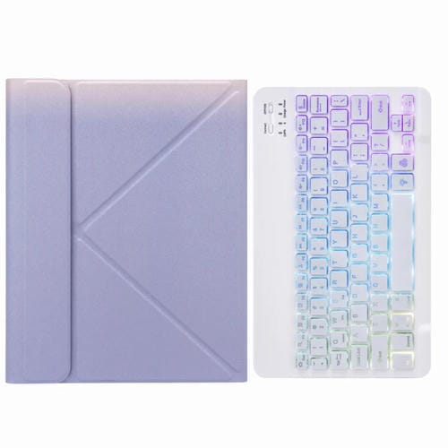 Funda de Cuero Teclado Bluetooth H-102S3 Retroiluminación Tri-Color Soporte iPad 10.2 2020/2019 Pro 10.5 (Púrpura)