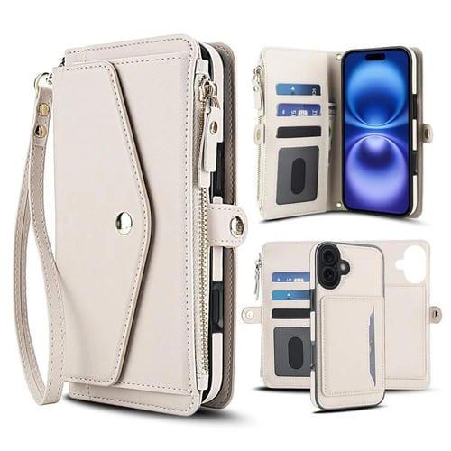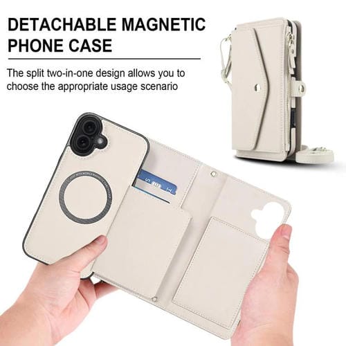 Funda de cuero desmontable con cordón para iPhone 17 (blanco)