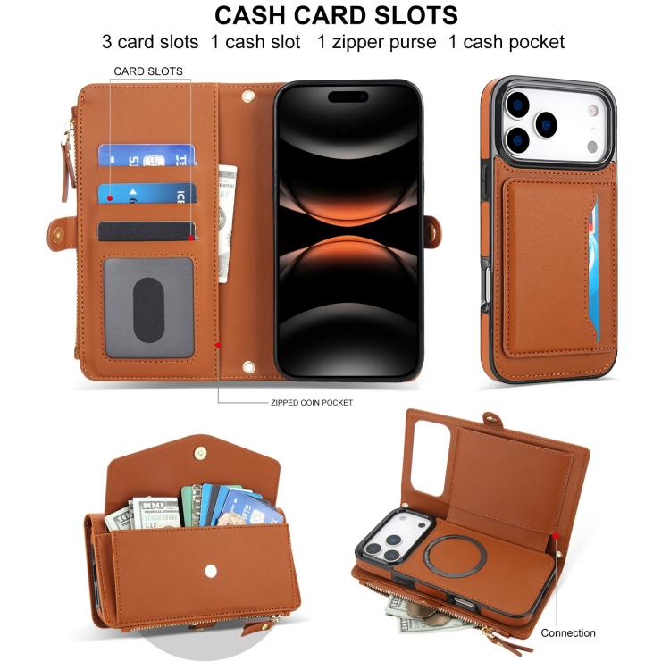 Funda de cuero desmontable con cordón para iPhone 17 Pro (marrón)