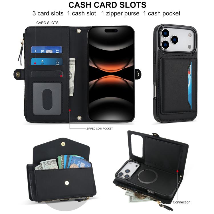 Funda de cuero desmontable con cordón para iPhone 17 Pro (negro)