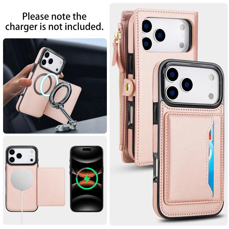Funda de cuero desmontable con cordón para iPhone 17 Pro (oro rosa)
