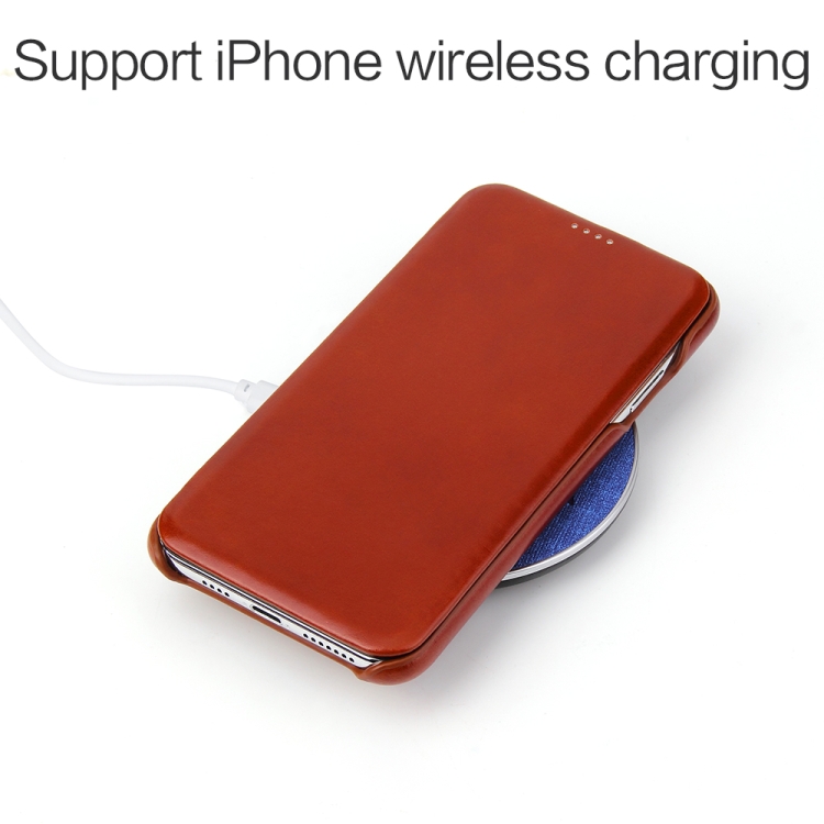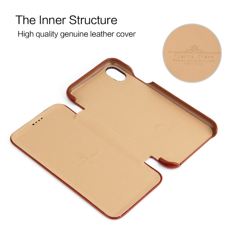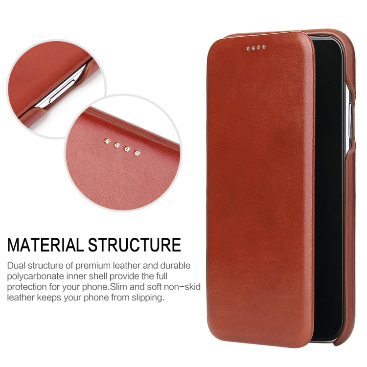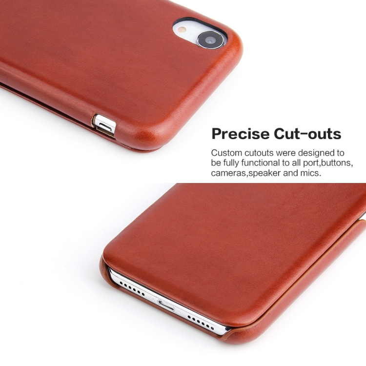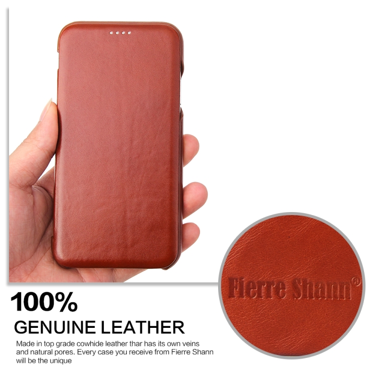 Funda de Cuero Genuino Fierre Shann para iPhone Xr con Tapa Horizontal Magnética (Marrón)