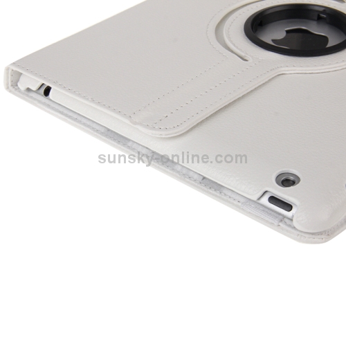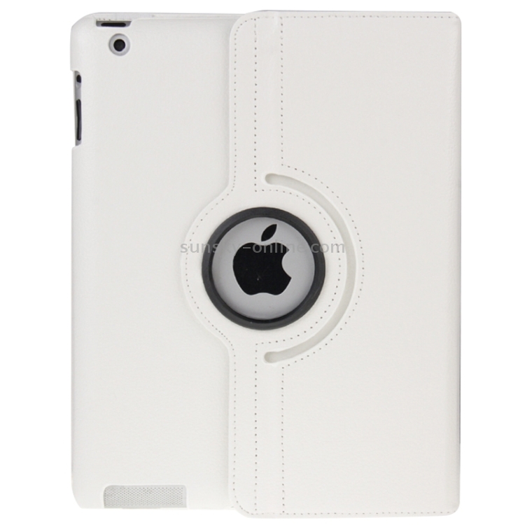 Funda de Cuero Giratoria 360 Grados para iPad 3 con Función Reposo Activación y Soporte (Blanco)