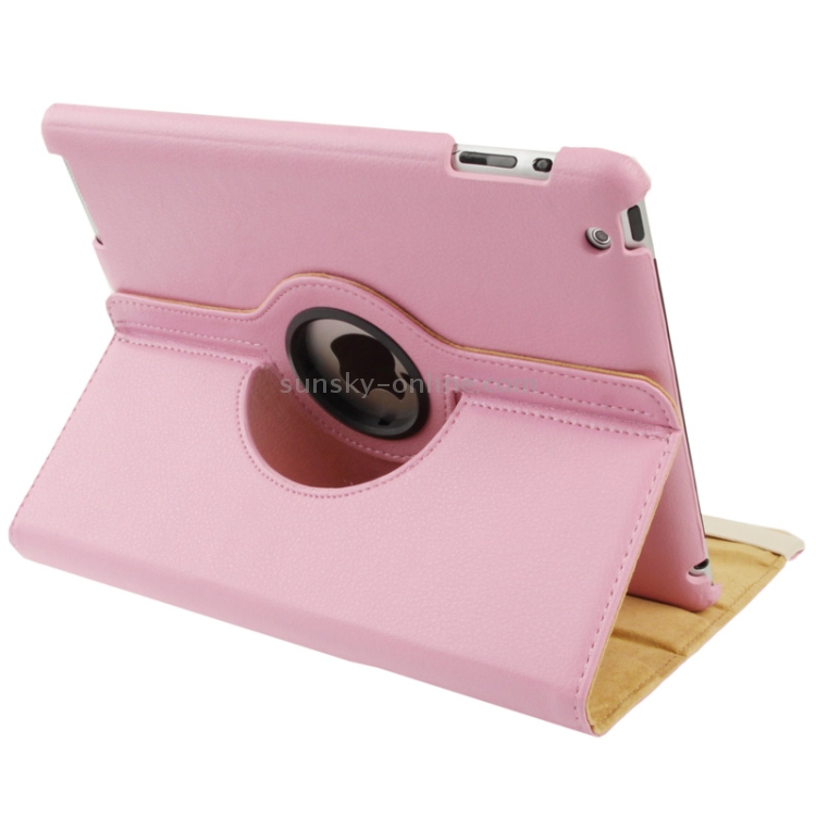 Funda de Cuero Giratoria 360 Grados para iPad 3 con Función Reposo Activación y Soporte (Rosa)